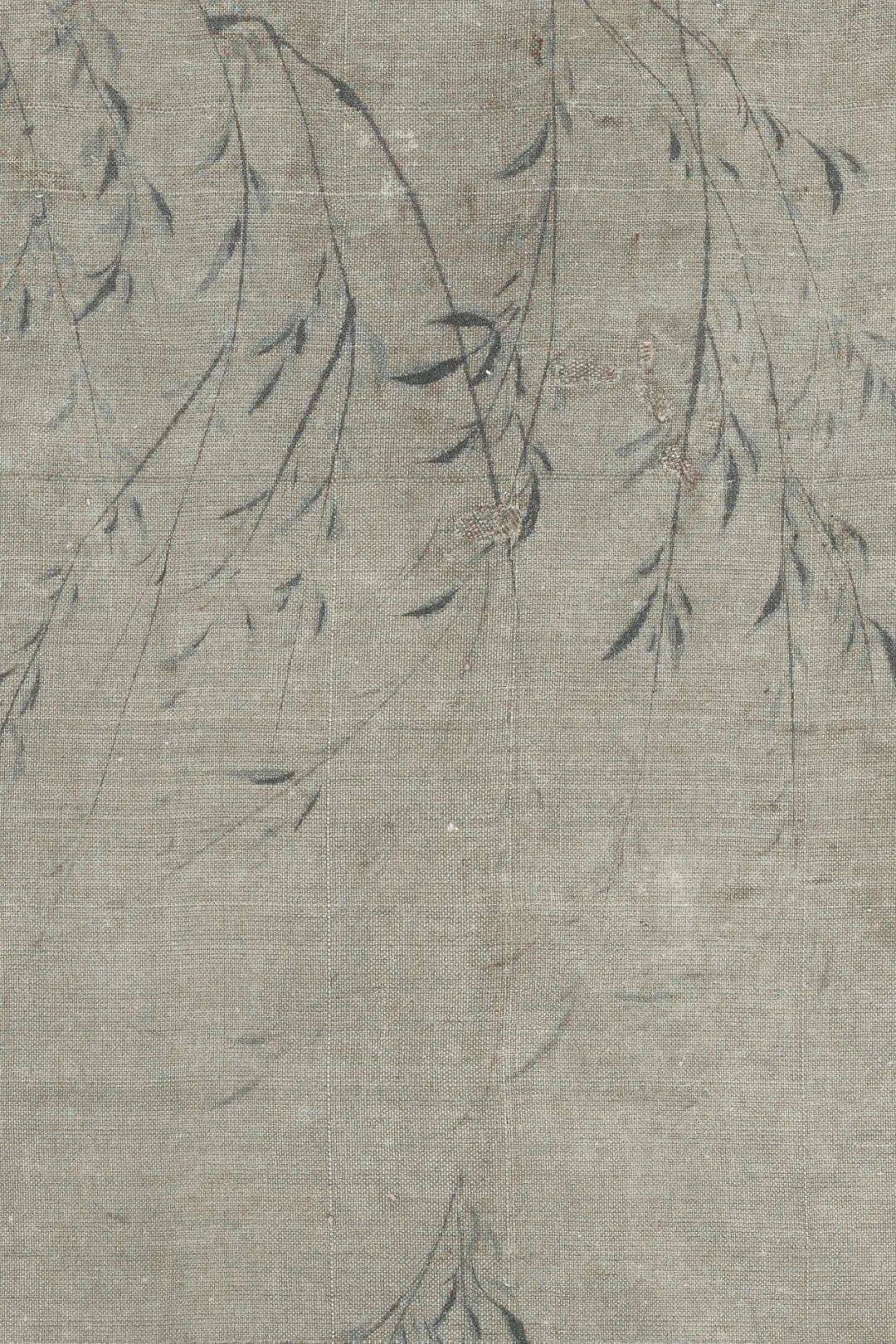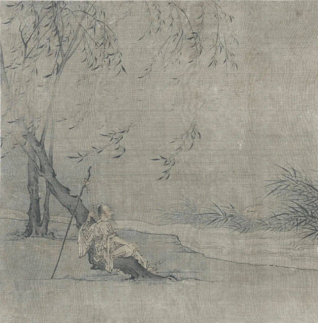 画面用色妍丽中透出萧索,柳叶的繁茂与高士的孤寂形成张力,这种“以乐景写哀”的手法,将隐逸主题升华为对存在意义的哲学追问。王诜以醉眼观世,在柳荫下构建了一个既真实又虚幻的精神场域,让观者不禁思考:所谓超脱,究竟是逃避现实的无奈,还是对抗世俗的智慧?